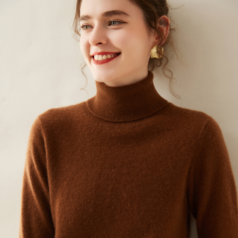 内蒙古100%小山羊绒女士高领针织软糯百搭毛衣秋冬新款打底羊毛衫