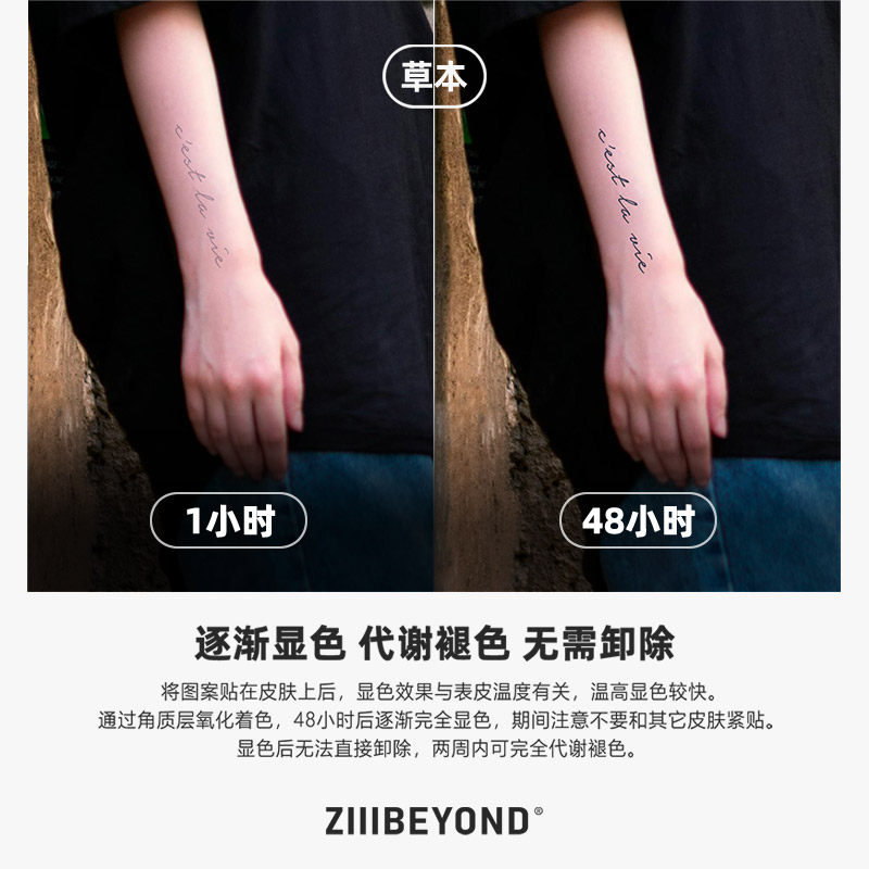 再变草本纹身贴法文防水持久