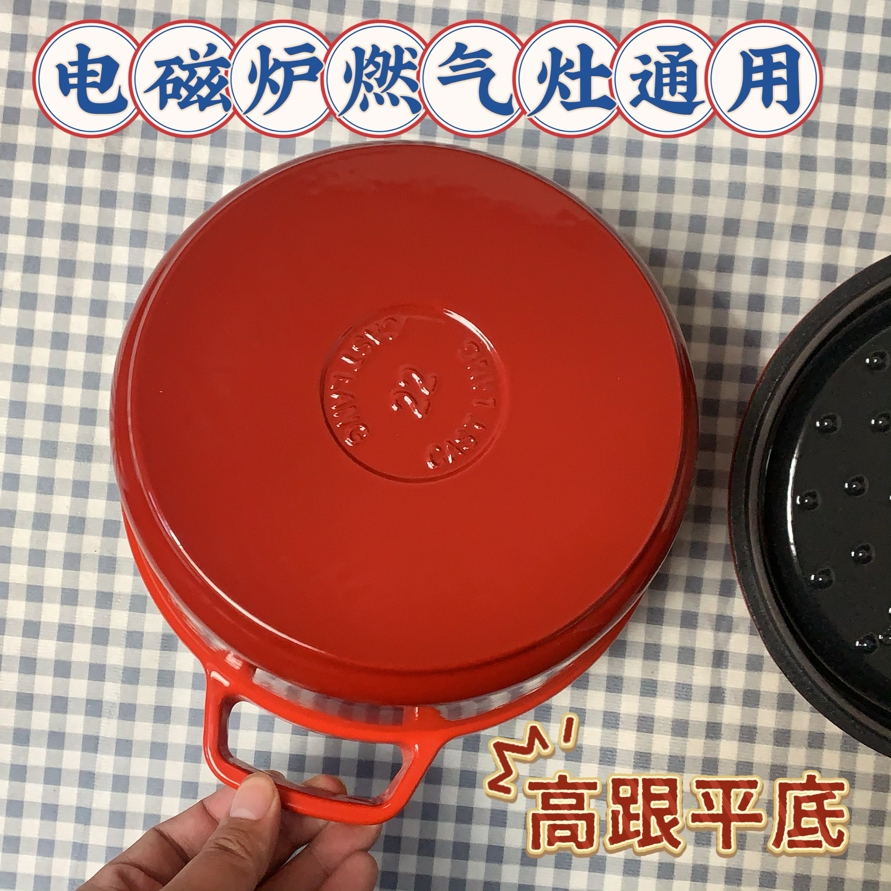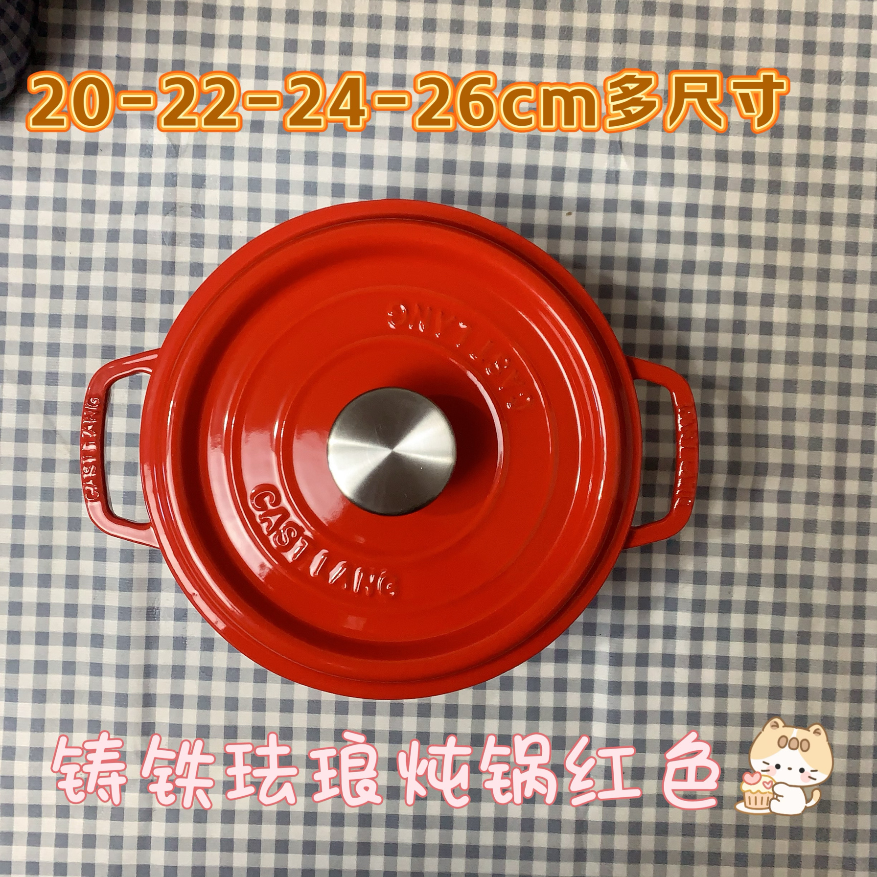 珐琅锅铸铁锅家用炖锅砂锅汤锅焖烧锅不粘祖红色祖母锅20-28cm