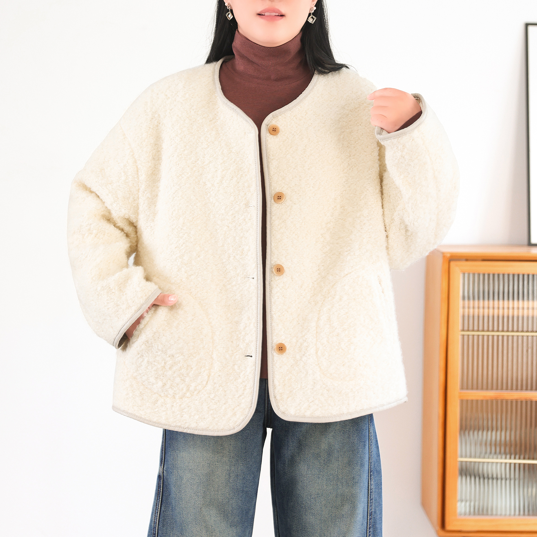 10.10新羊羔毛小香风开衫外套女 圆领小短款皮革包边夹棉加厚棉衣