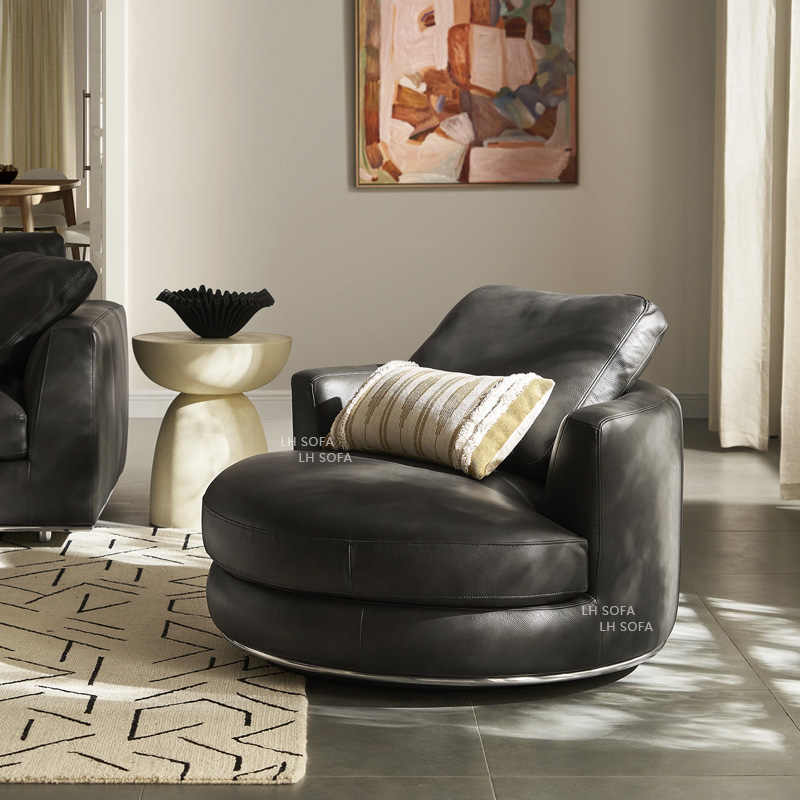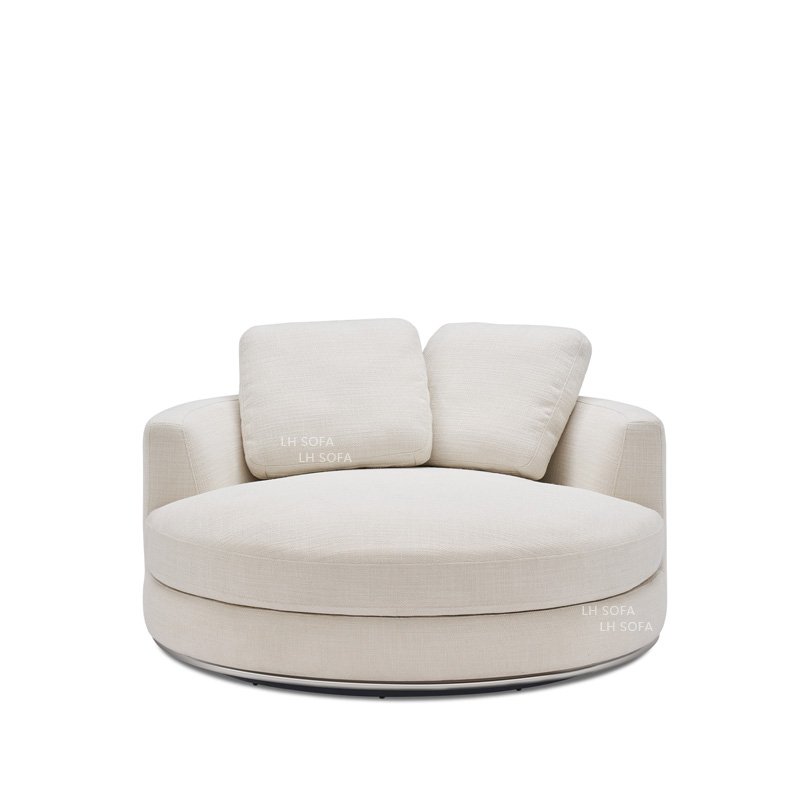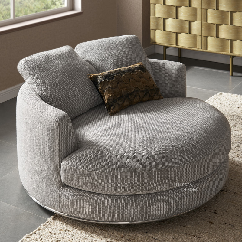 法式中古风亚麻可拆洗单人旋转沙发意式极简轻奢圆形阳台懒人沙发