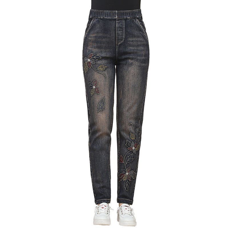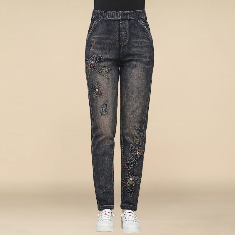 妈妈松紧腰牛仔裤女春秋2023新款中年人洋气小脚裤中老年秋装裤子