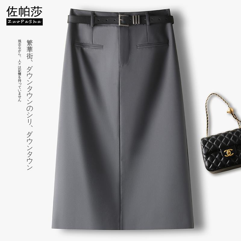 开叉西装直筒半身裙女2025春夏季新款高腰显瘦通勤百搭一步包臀裙