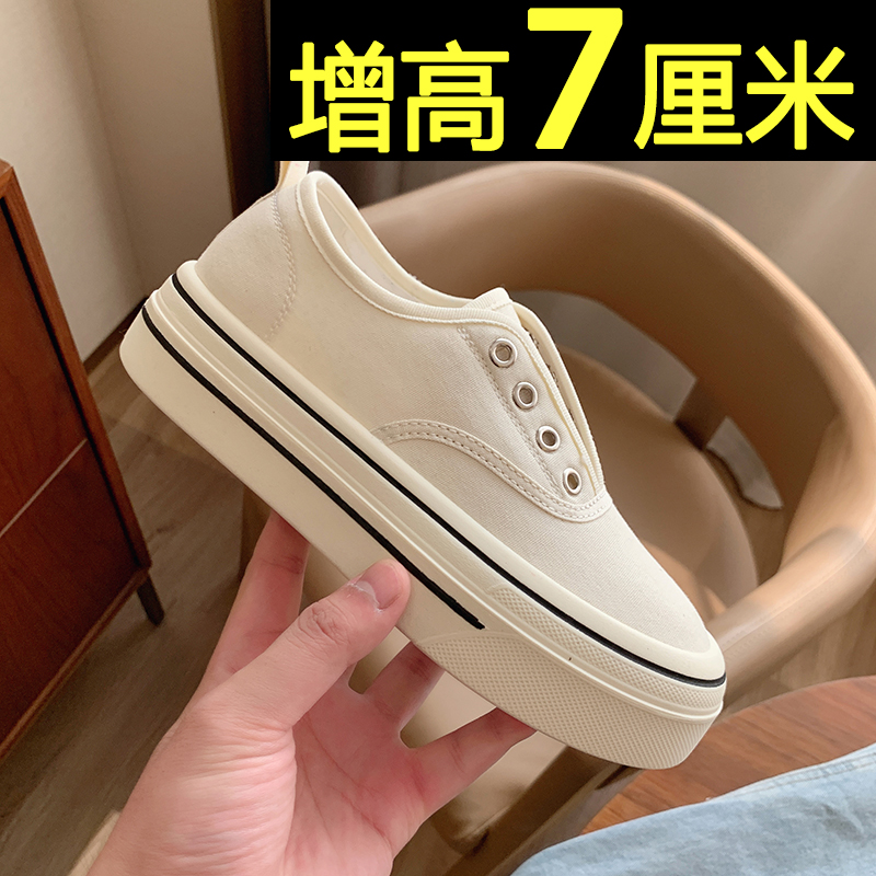 一脚蹬帆布鞋增高厚底小白鞋板鞋