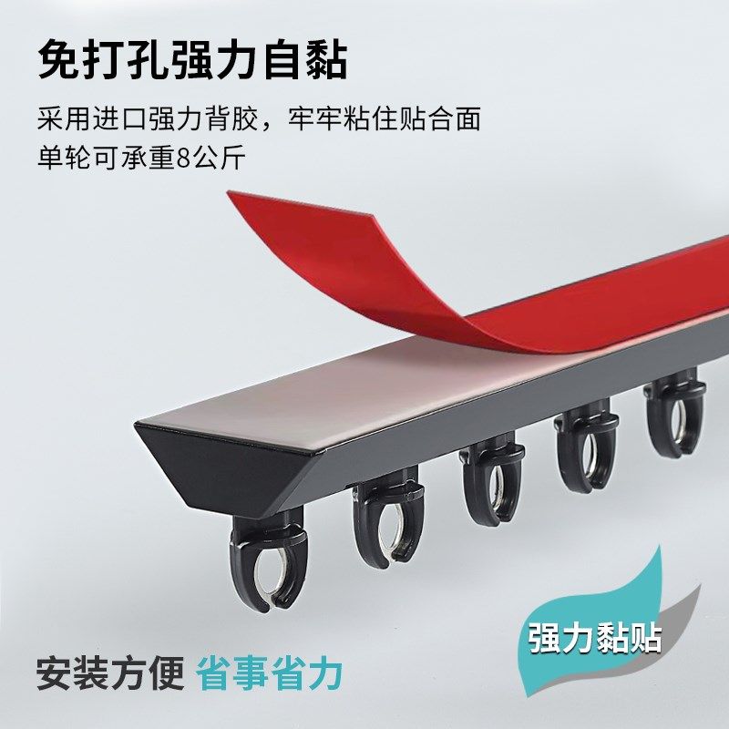 慕安娜免打孔超薄窗帘轨道静音滑轨内开窗顶装挂钩式滑轮隐形u形