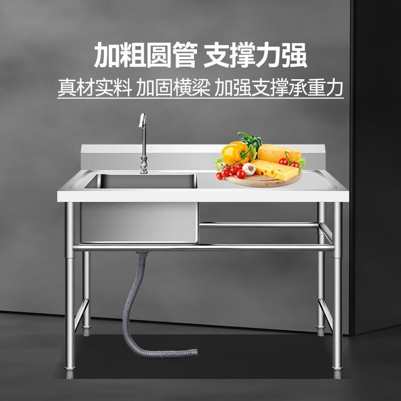 304不锈钢水槽厨房支架商用饭店洗衣台洗菜盆洗碗池带平台洗刷盆