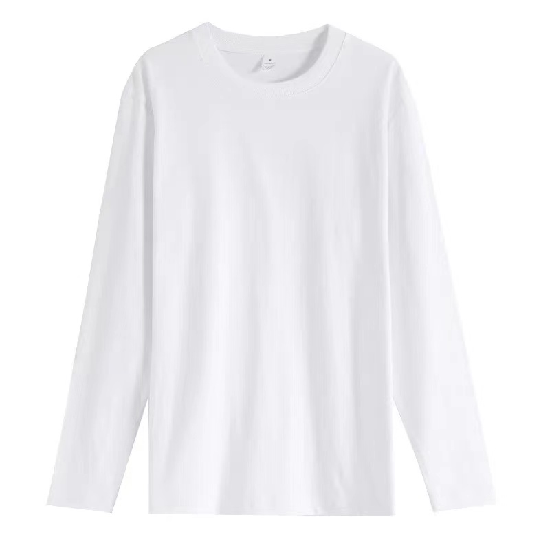(2件79)270g纯棉长袖圆领纯白T恤秋冬季宽松款男女百搭通勤打底衫