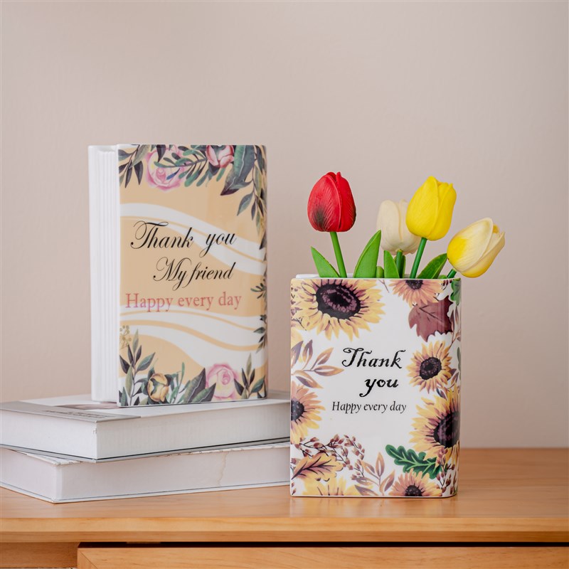 欧式高级感陶瓷书本插花瓶民宿样板房间装饰品办公室书房轻奢摆件