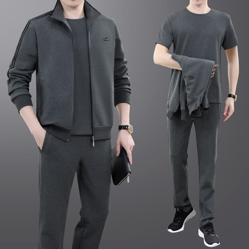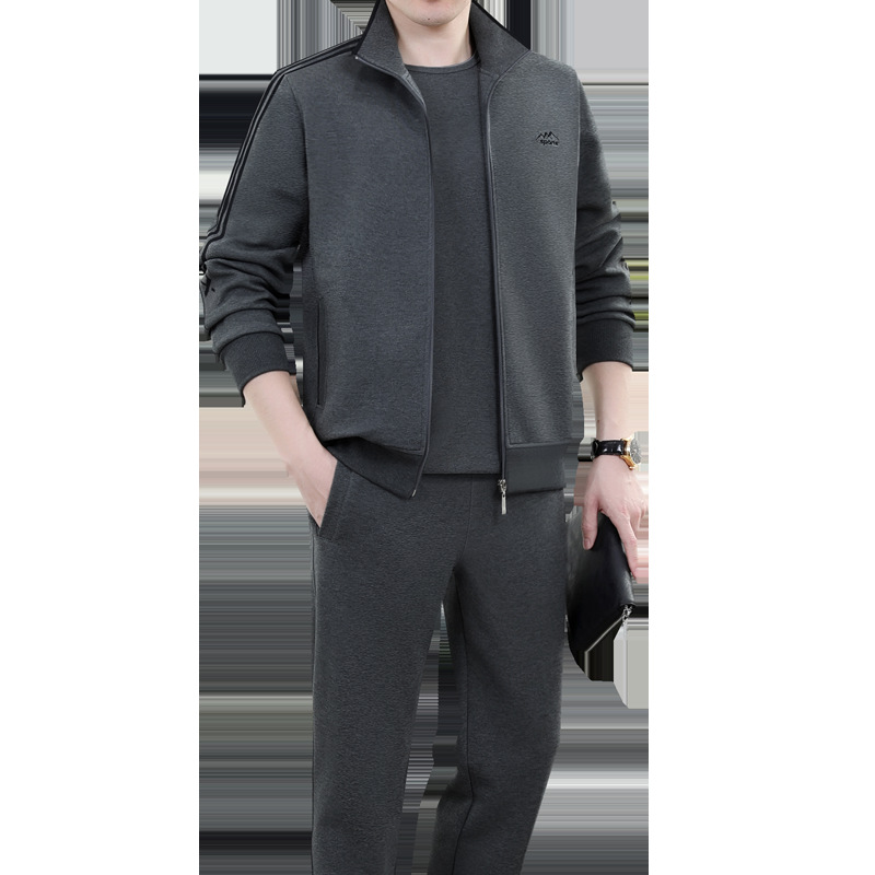 中老年人运动套装2022新款男春秋大码休闲跑步运动服三件套爸爸装