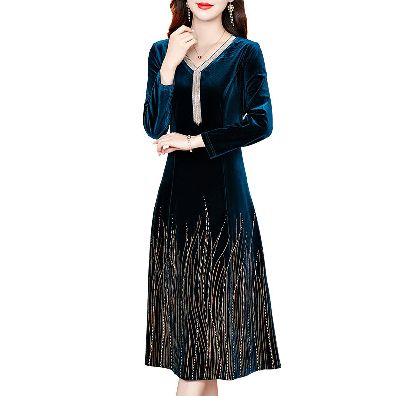 香妮芬高端精致丝绒重工钉珠喜婆婆宴会装2026新款秋妈妈婚姻礼服