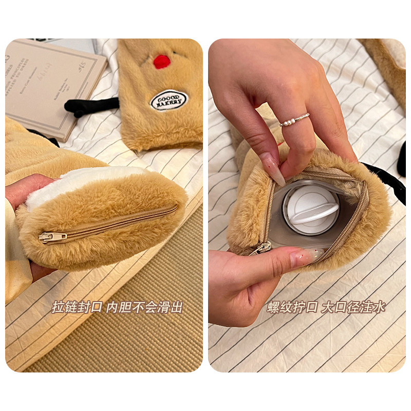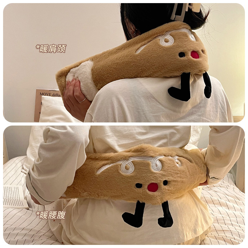 可爱吐司长条热水袋注水暖手脚暖肚子热敷被窝专用宿舍毛绒暖宝宝