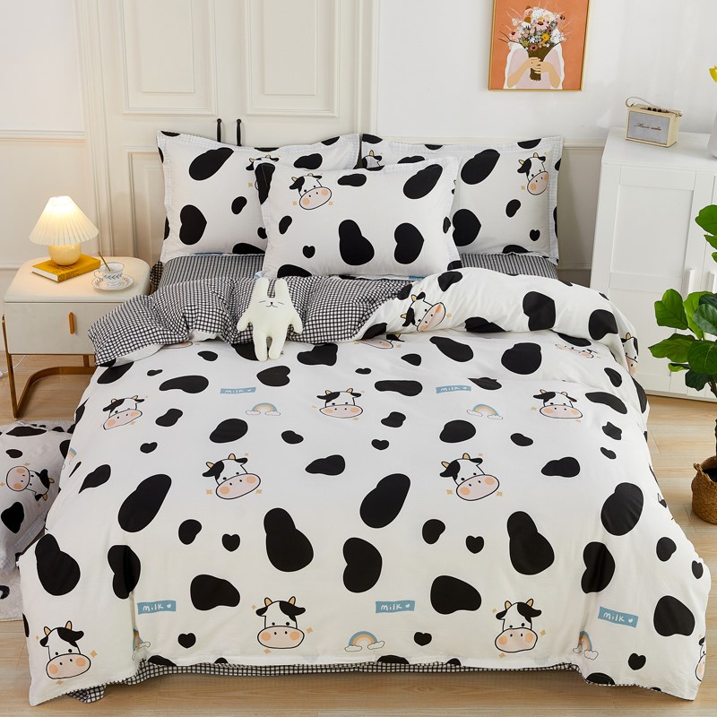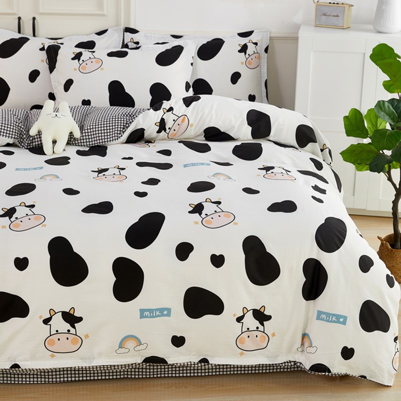 可爱奶牛卡通三四件套全棉床单儿童男孩男童黑白斑纹床上被套