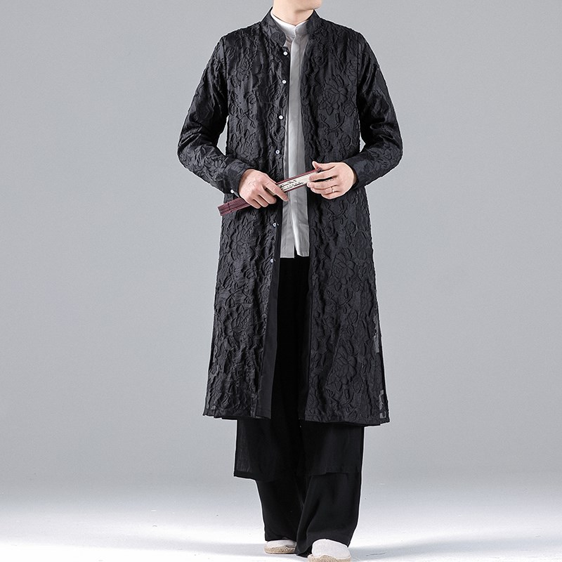 中国风男装禅修居士服中长款风衣中式改良汉服开衫复古风道袍唐装
