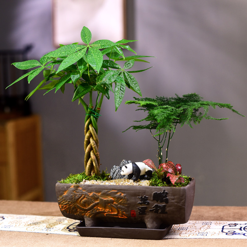 文竹盆栽富贵竹室内绿植发财树组合好养微景观中式桌面植物礼品