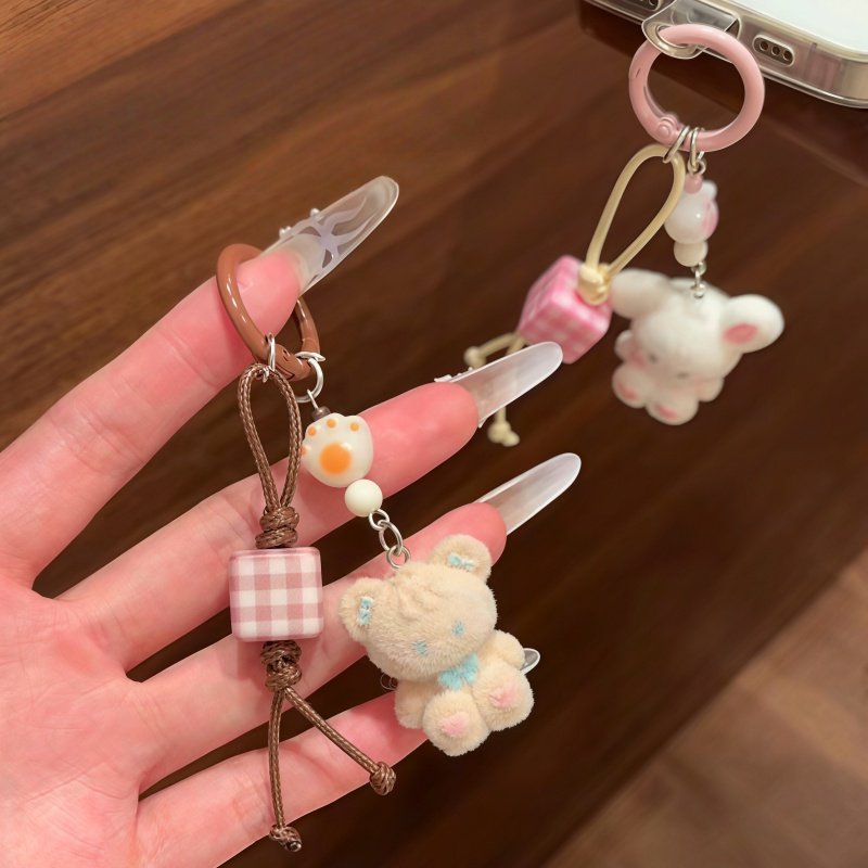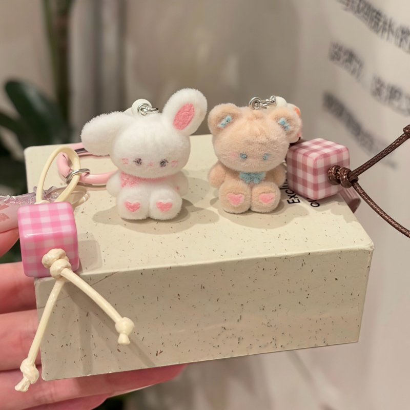 可爱小兔小熊植绒卡通钥匙扣手机链送闺蜜包包挂饰相机小挂件礼物