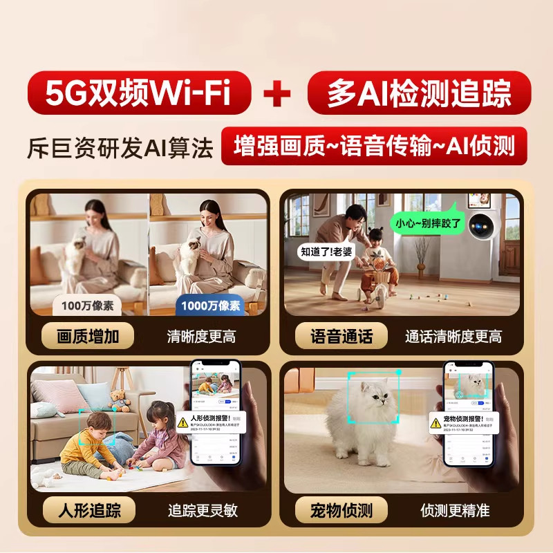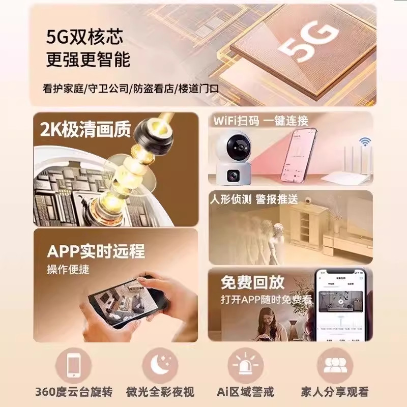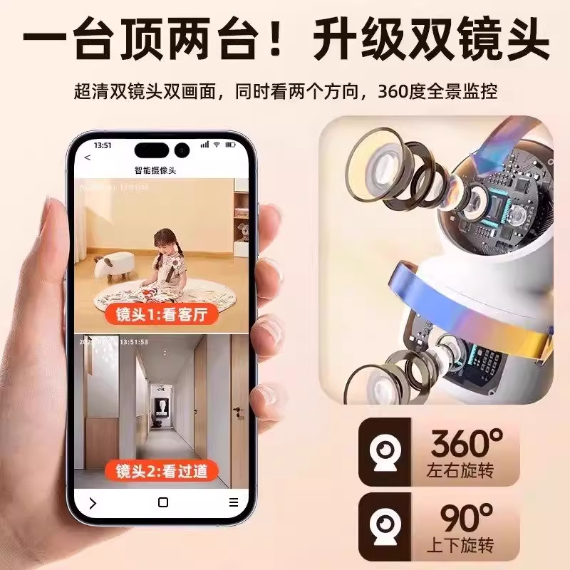 小米适用监控摄像头家用室内外手机无线连接远程360度无死角家庭高清智能夜视看护器