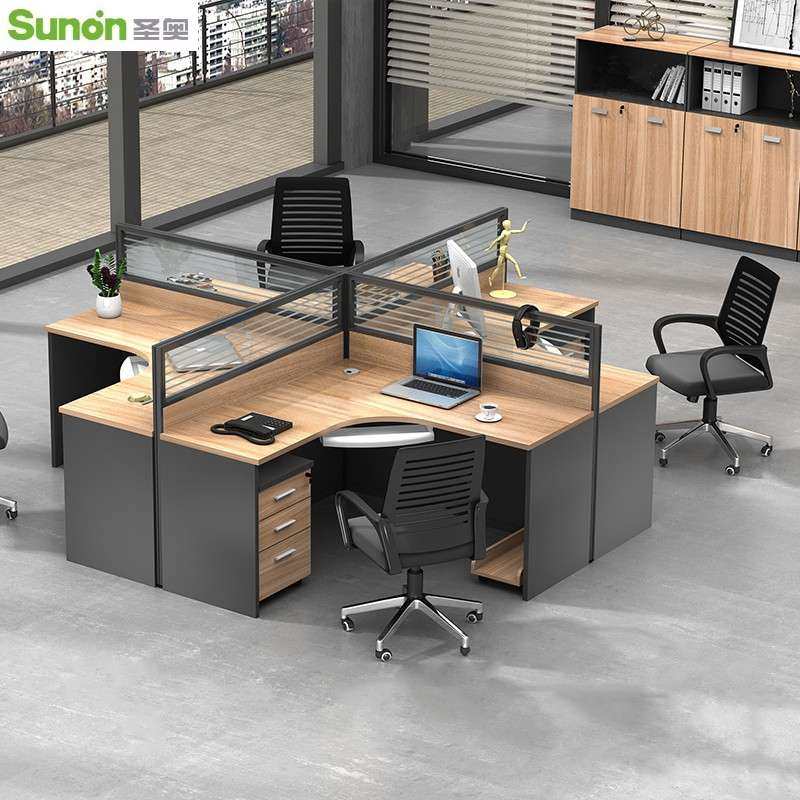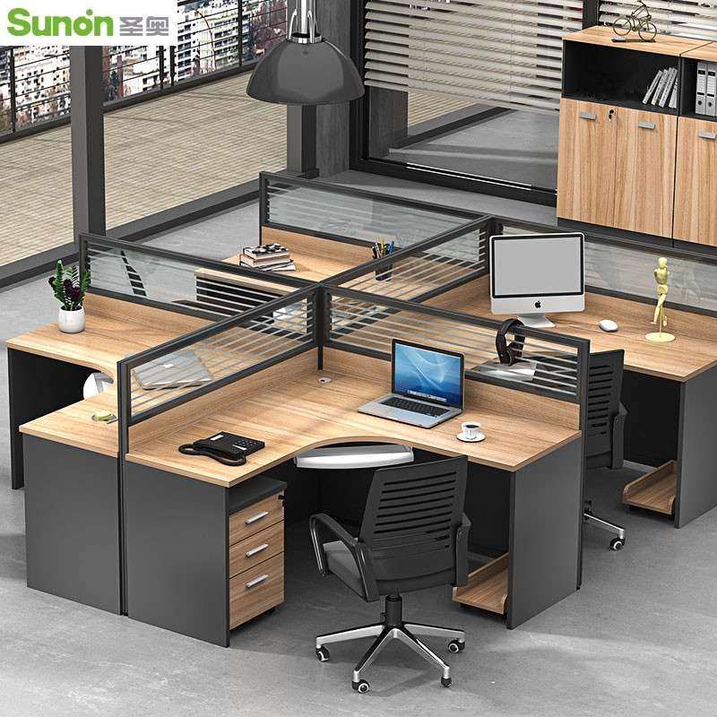 圣奥屏风办公桌g椅组合4人位简约L型办公室职员68人卡座工位转角