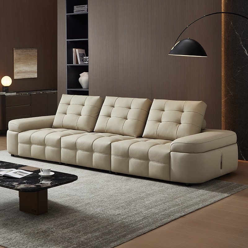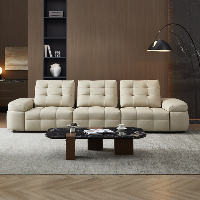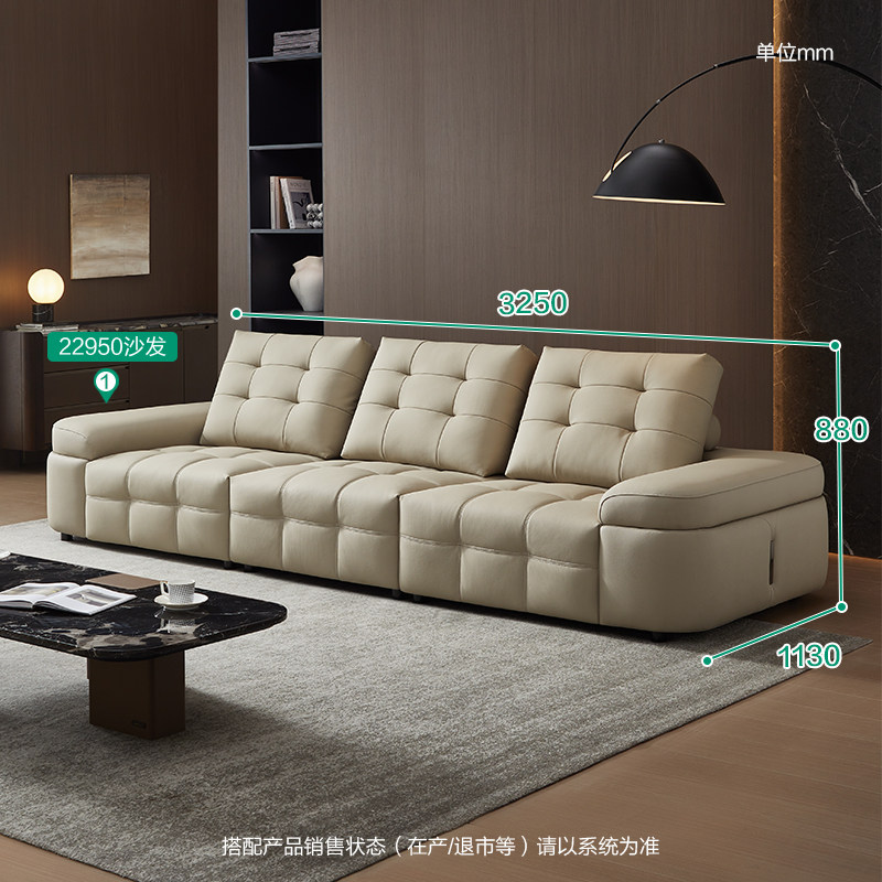 全友家居门店同款 劳伦斯 22950 加厚头层黄牛皮一字型皮艺沙发