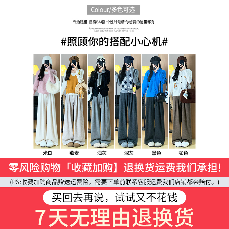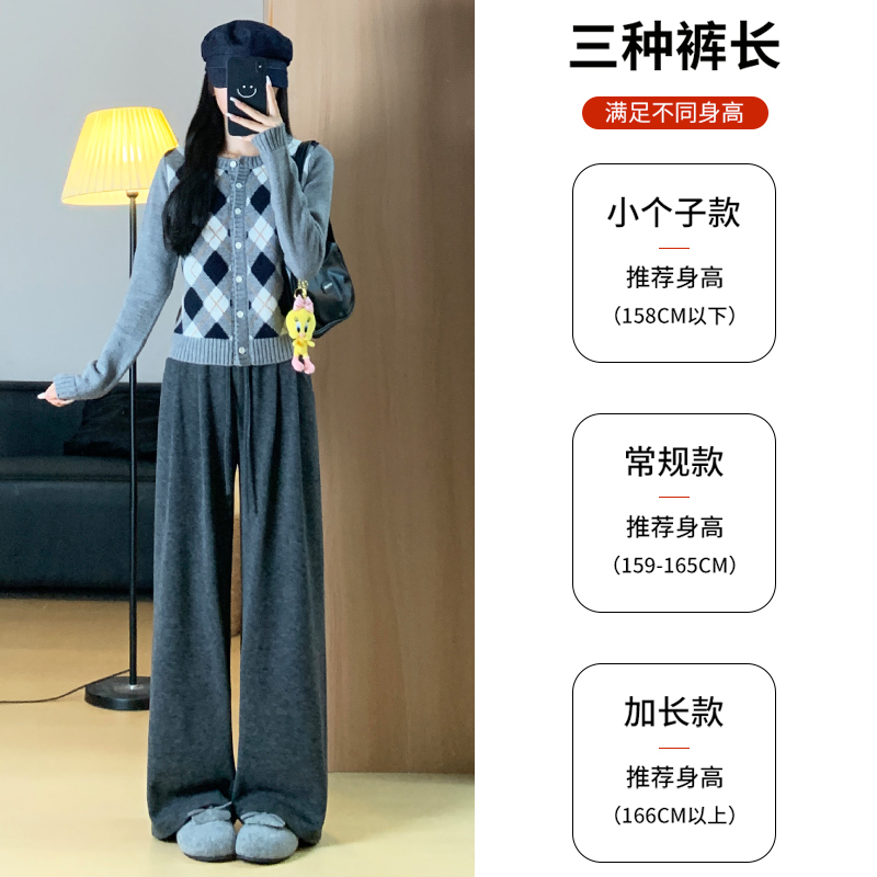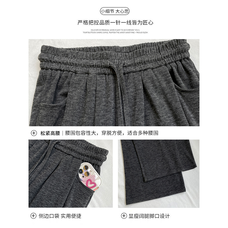 深灰色糯米裤女秋季2025新款秋冬加绒高腰休闲小个子羊绒阔腿卫裤