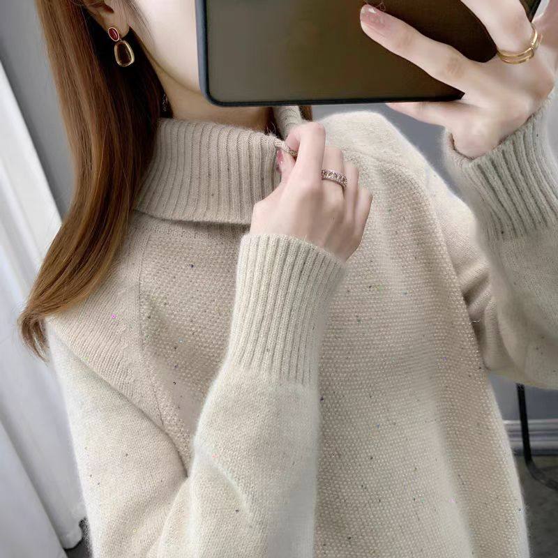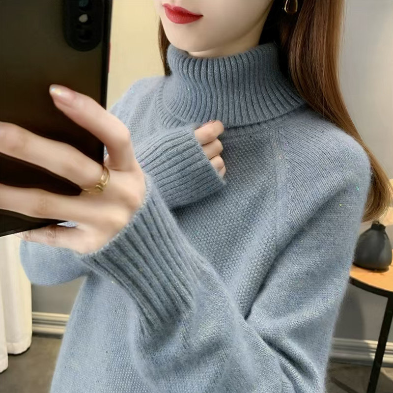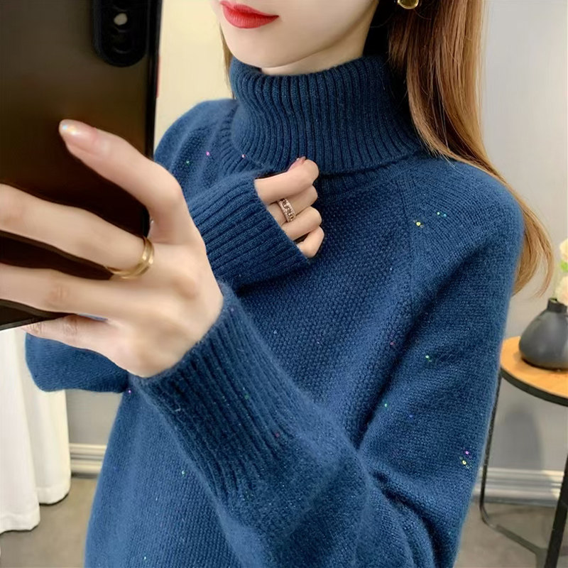 鄂尔多斯市轻奢高领亮片毛衣女加厚针织衫百搭打底衫紫色长袖上衣