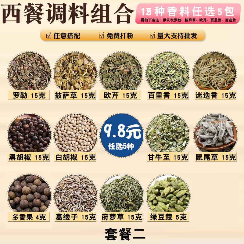西餐香料 百里香罗勒叶碎粉牛至披萨草欧芹干迷迭香调料香草食用