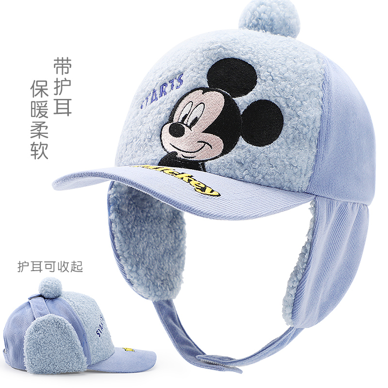 迪士尼儿童帽子秋冬宝宝护耳帽加绒男童棒球帽男孩雷锋帽冬季帅气