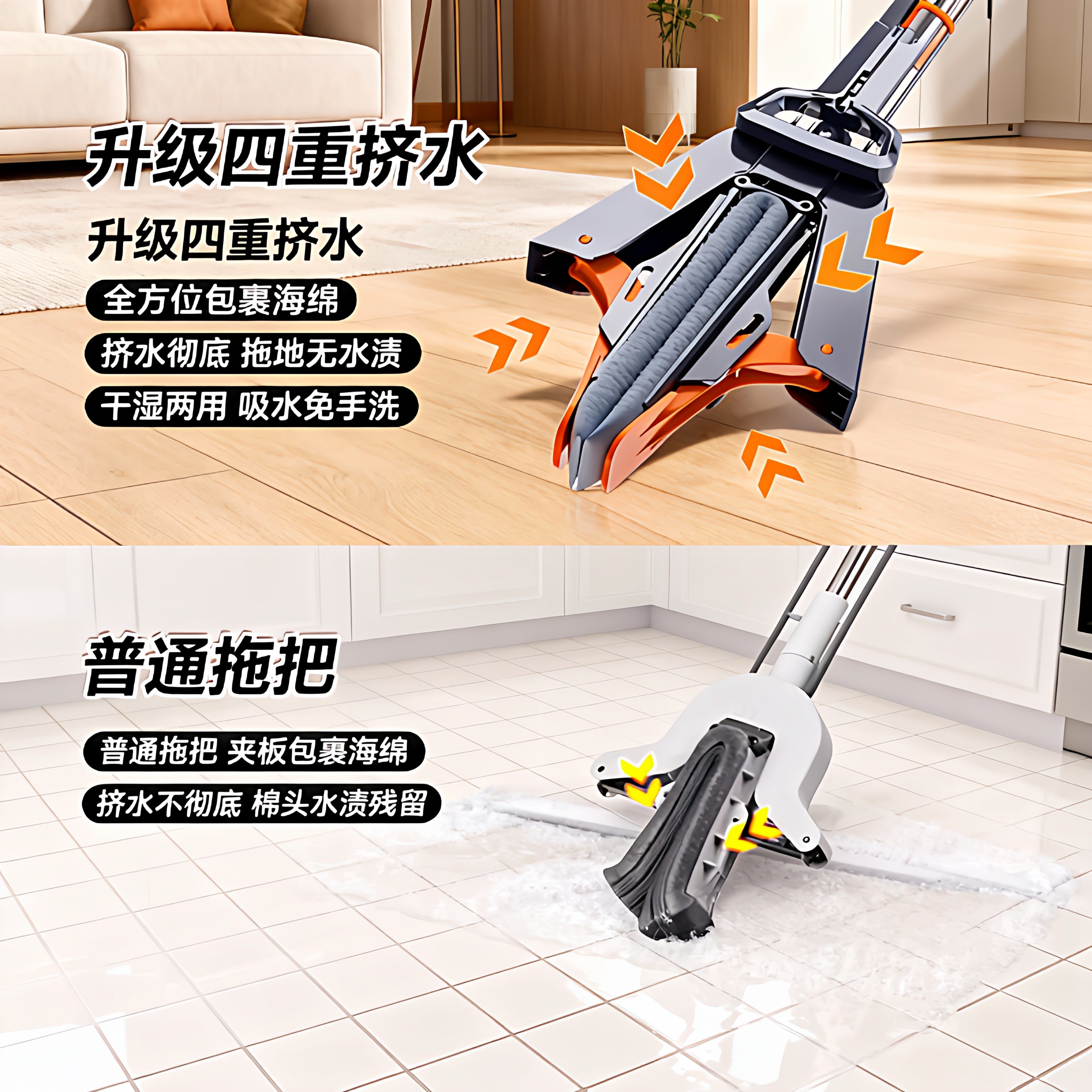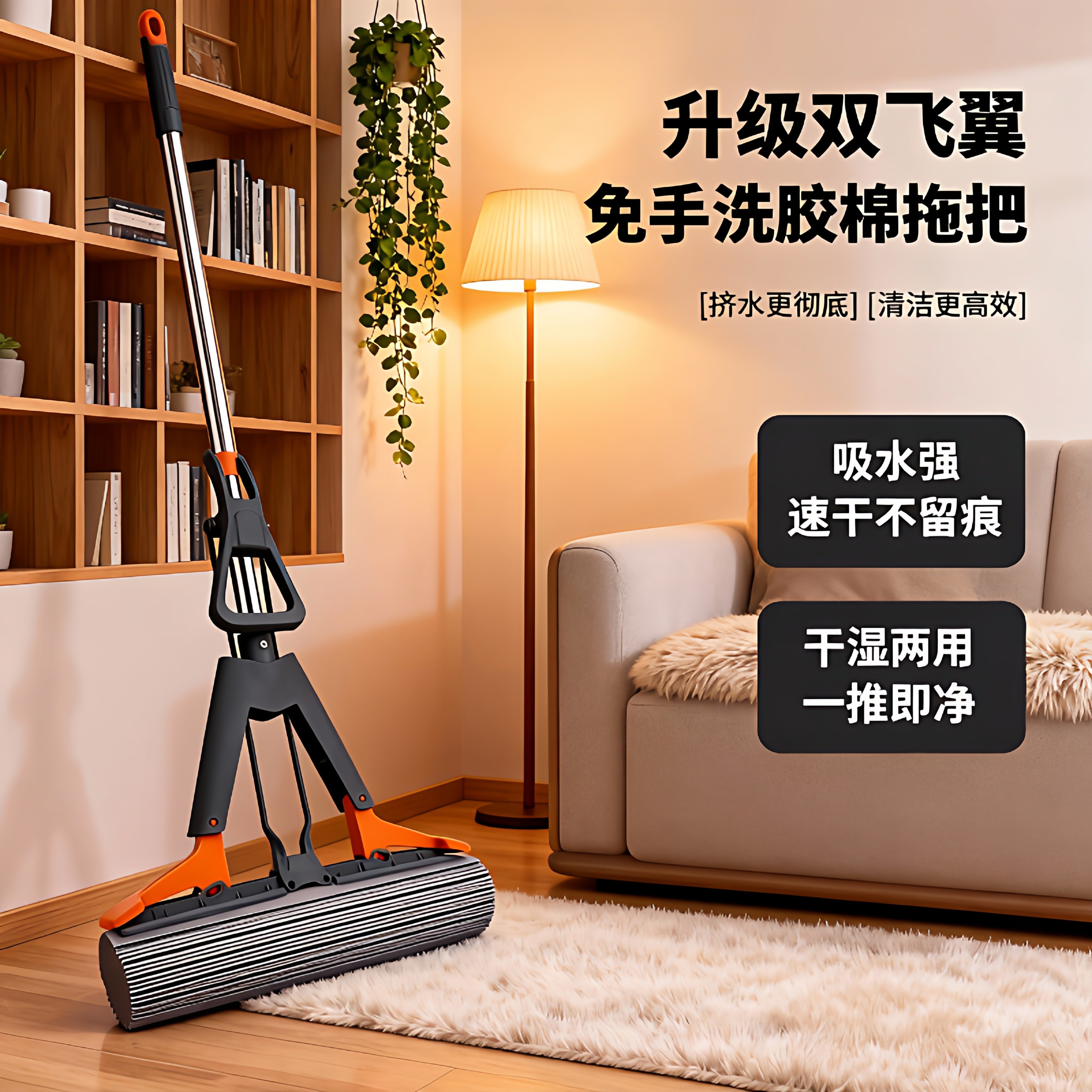 海绵拖把2026新款免手洗家用一拖净干湿两用吸水免手洗胶棉头墩布