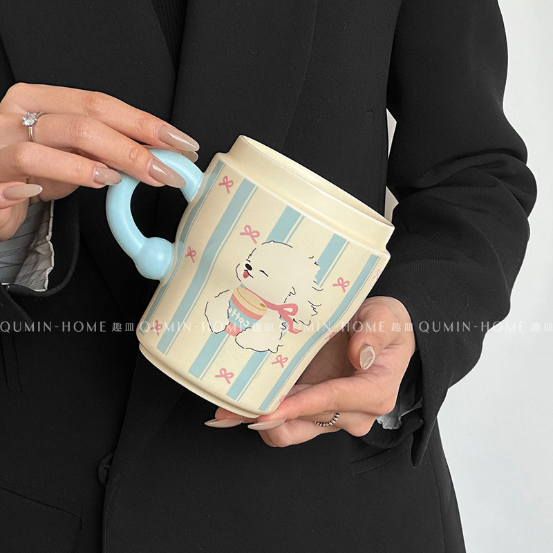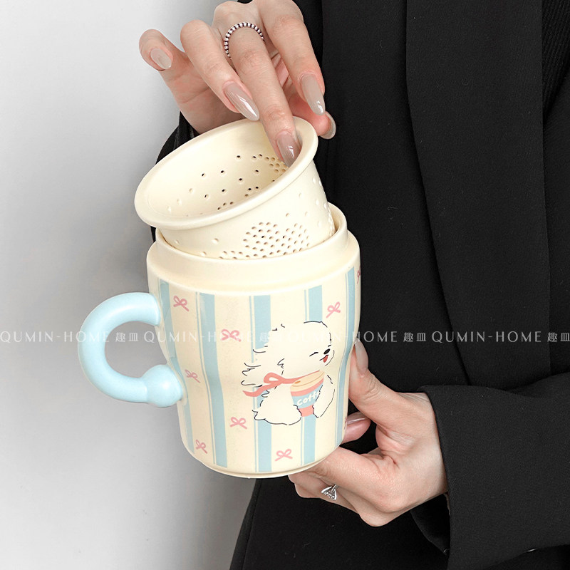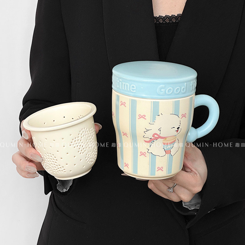 趣皿可爱马克杯家用办公室水杯子茶水分离杯带盖茶漏杯卡通陶瓷杯