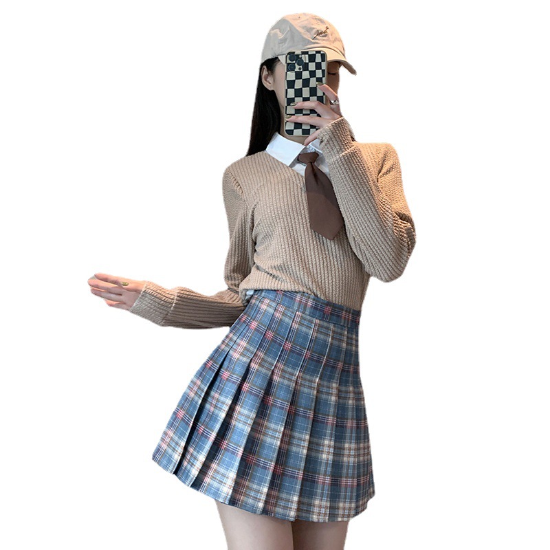 百褶半身裙女装高腰a学院风