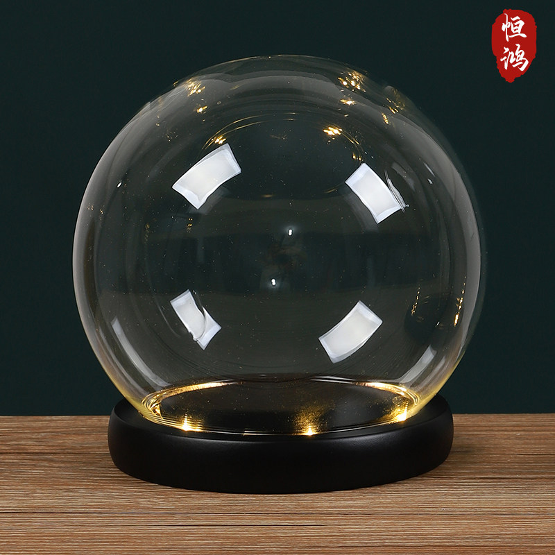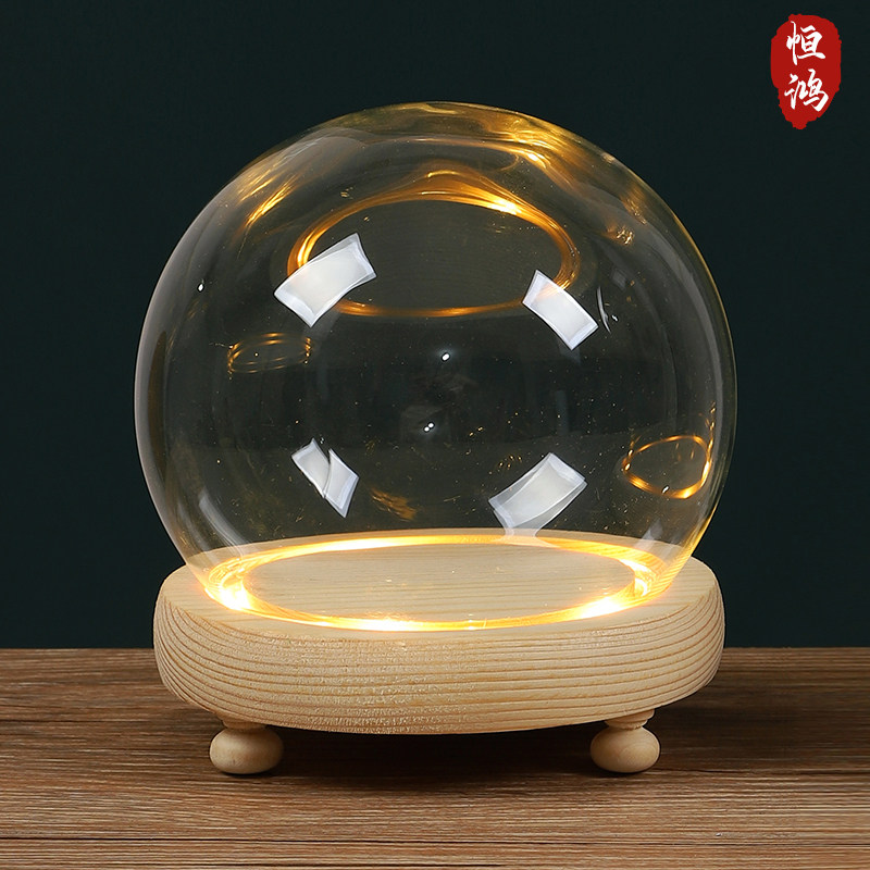 发光球形玻璃罩透明展示盒哪吒人偶积木桌面摆件手办带灯防尘罩