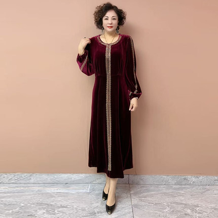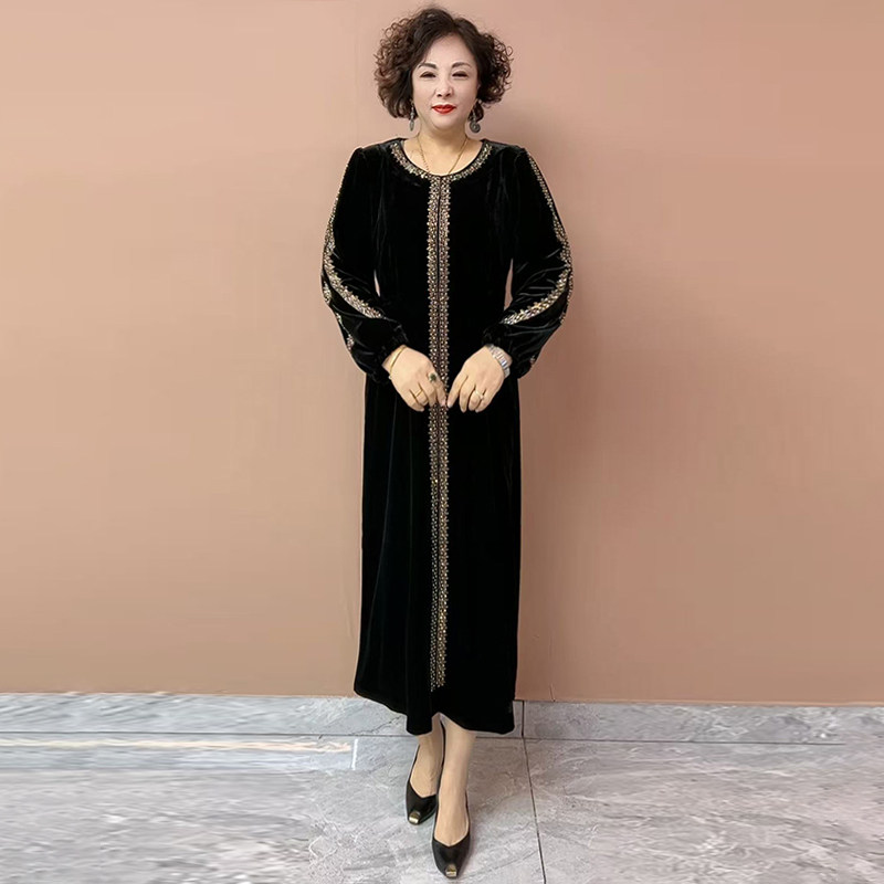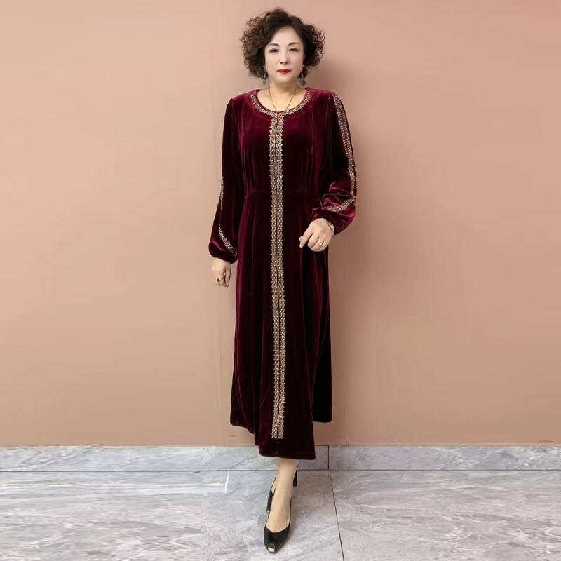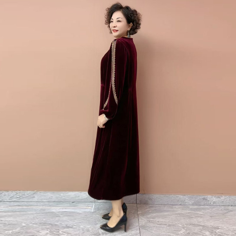 高端真丝绒连衣裙2025秋季新款高贵洋气款式重工钉珠新年婚宴长裙