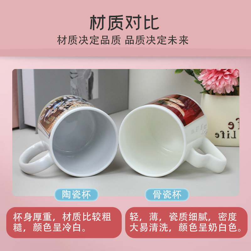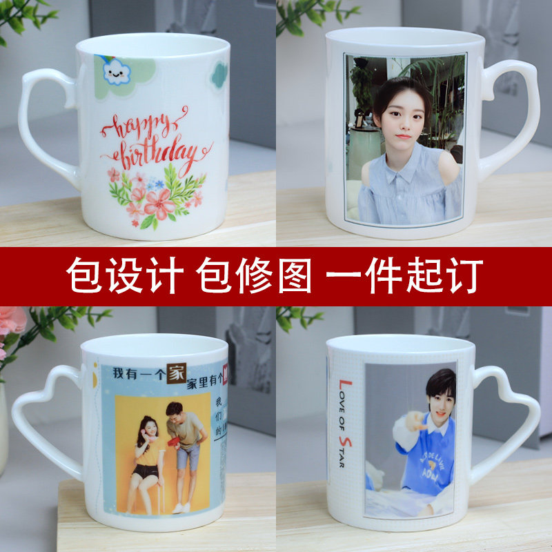 来图定制骨瓷杯盖勺印照片马克杯情侣水杯刻印字logo生日送礼物盒