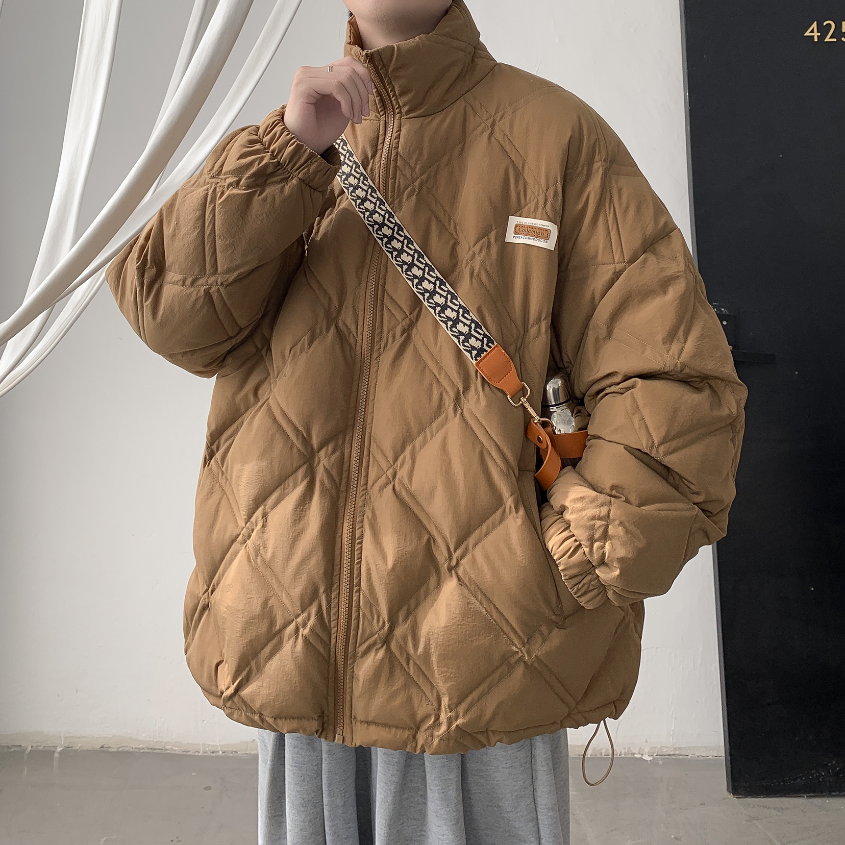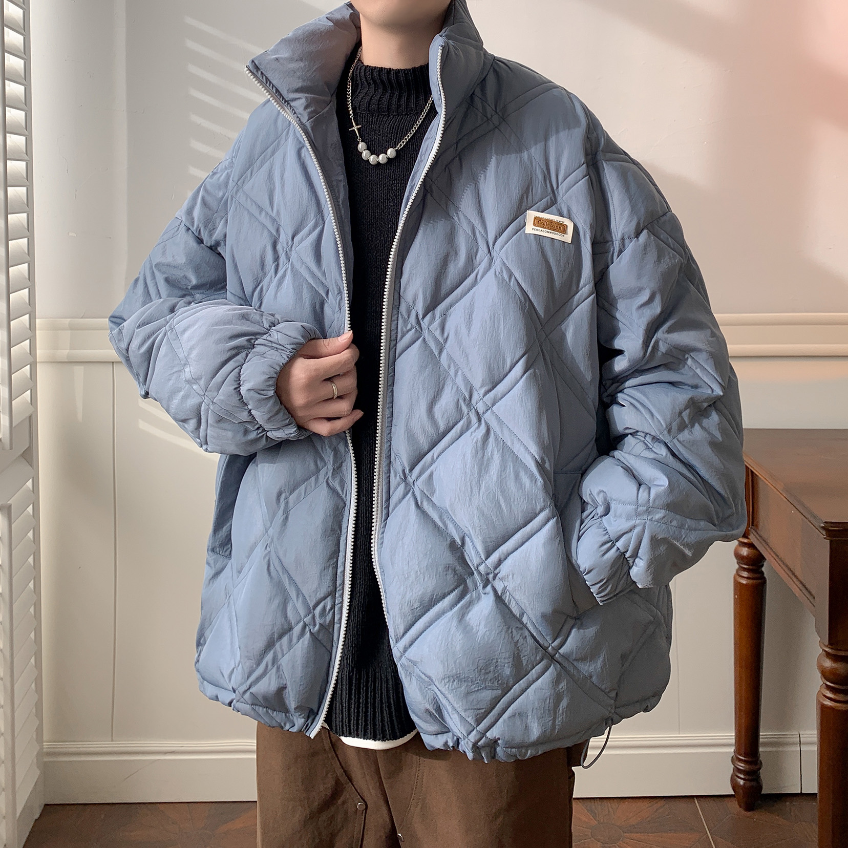 胖胖哥加厚冬季菱形格男生棉服