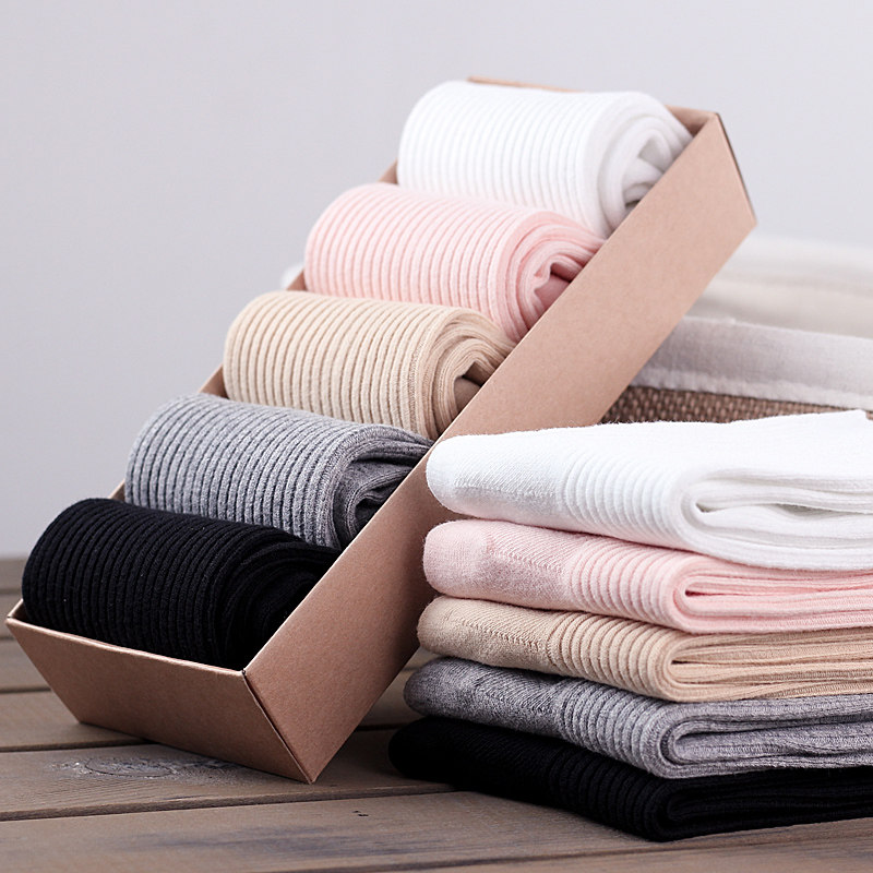 日系袜子女ins潮百搭棉袜女士纯棉中筒长筒袜女袜纯色女式黑白色