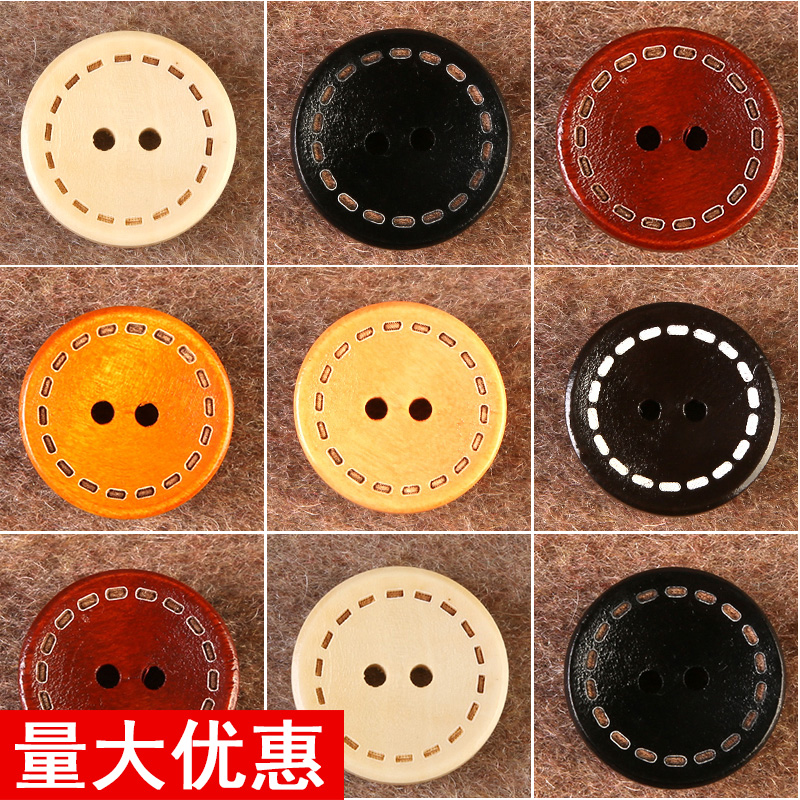 圆形木质两眼衣服装饰钮扣男女大衣风衣毛衣外套上衣纽扣高档扣子