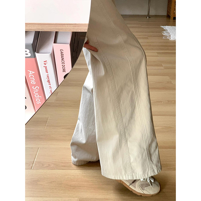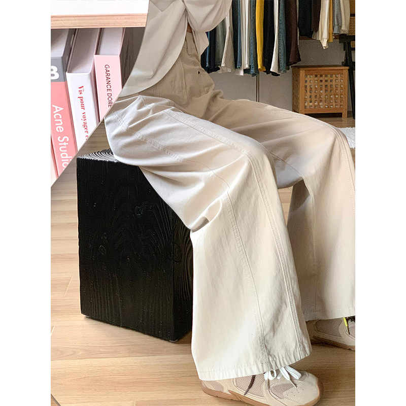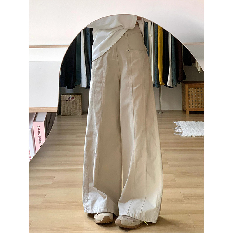 胖mm特大码杏色工装牛仔裤女2025新款美式慵懒风高腰显瘦阔腿长裤