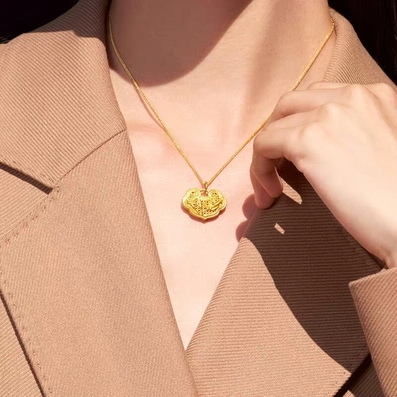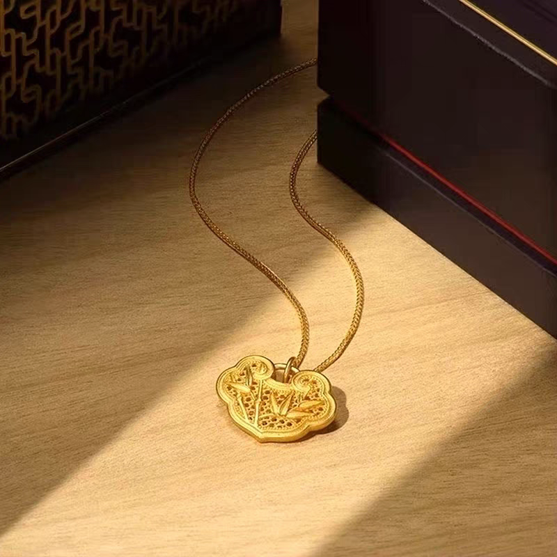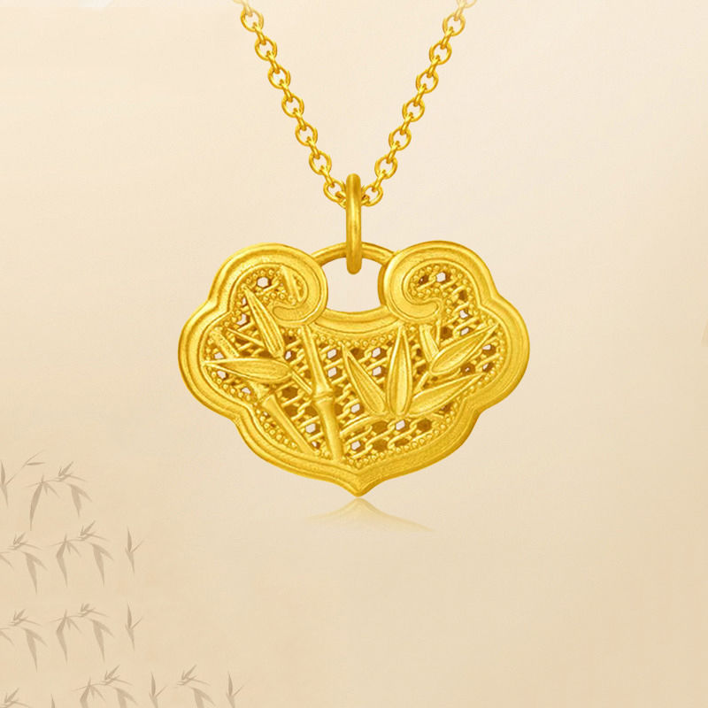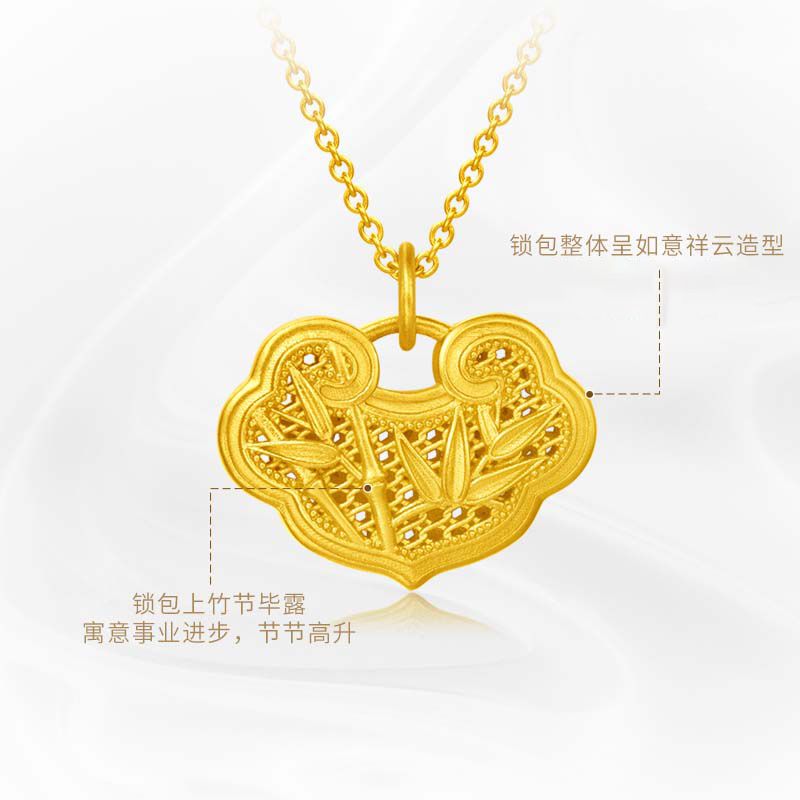 金包银竹报平安锁包吊坠女项链