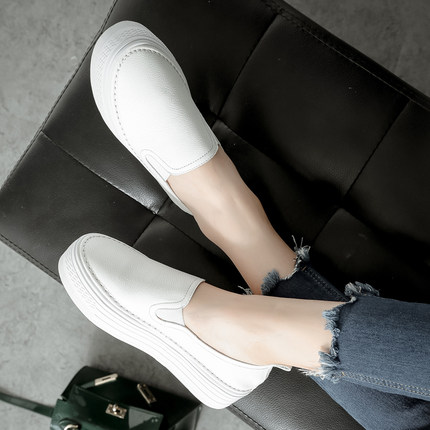 韩国松糕厚底鞋休闲小白鞋增高显瘦懒人一脚蹬乐福鞋单鞋女平底鞋