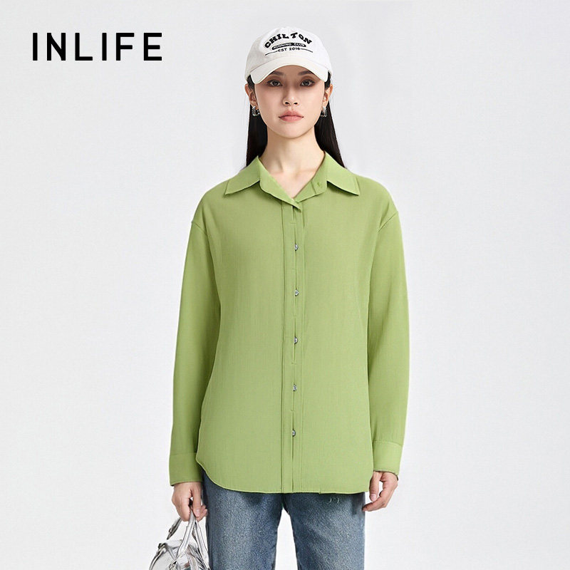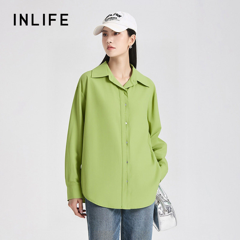 伊纳芙时尚气质宽松长袖衬衫女冬季新款通勤简约休闲衬衣百搭上衣