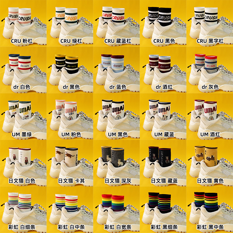 袜子女中筒袜白ins潮夏季日系纯棉字母袜春秋季学院风运动短袜薄
