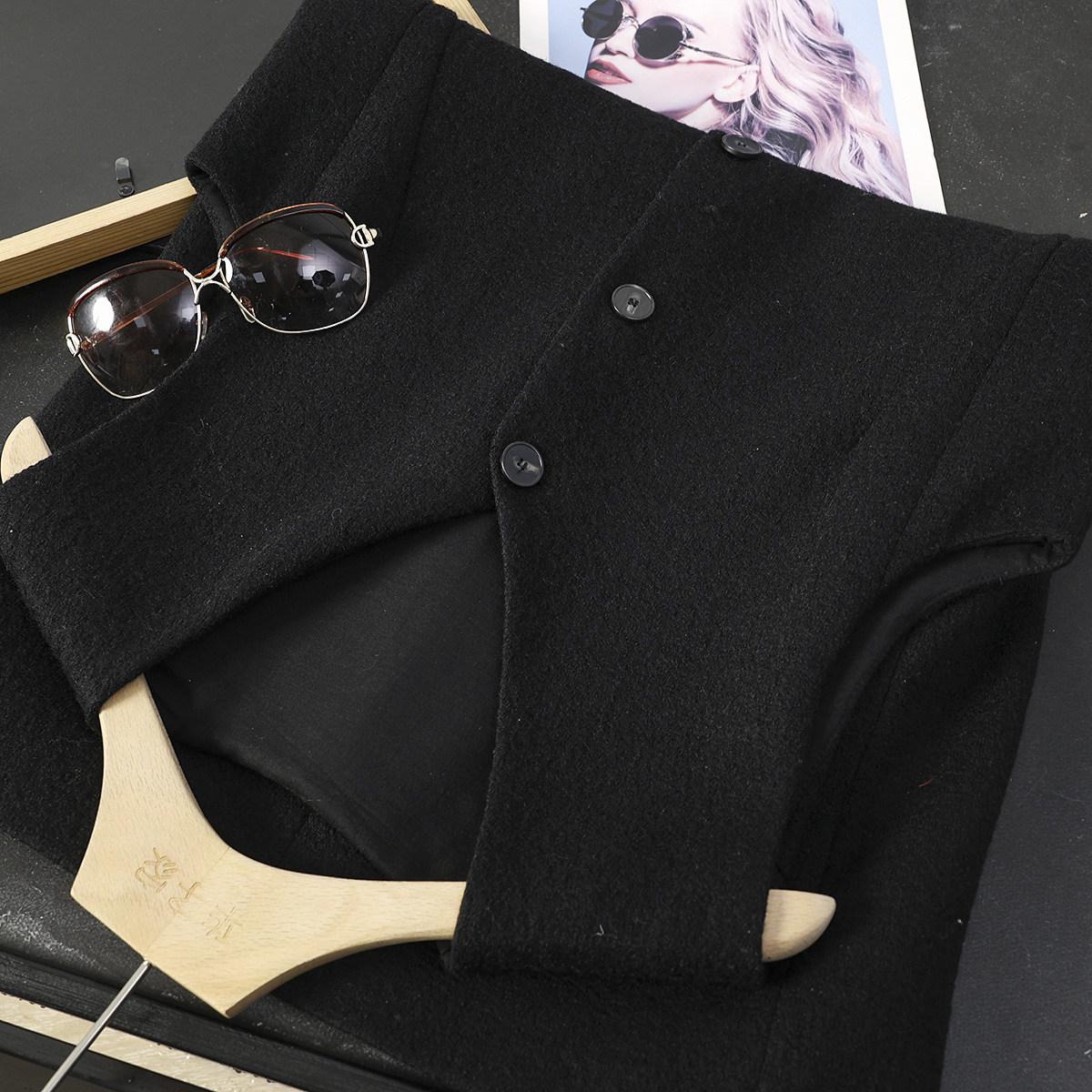 华子家 羊毛混纺V领单排扣毛呢背心裙女秋冬无袖马甲连衣裙45681