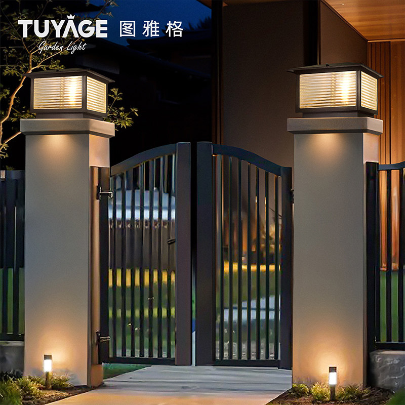 图雅格太阳能柱头灯别墅大门柱灯户外庭院灯围墙围栏灯防水柱子灯