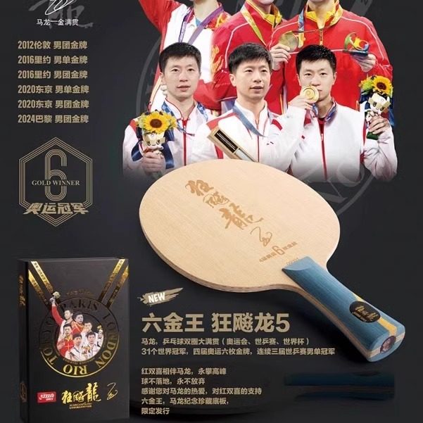 DHS红双喜国家队特制马龙同款六金王狂飙龙5乒乓球底板内置芳碳正