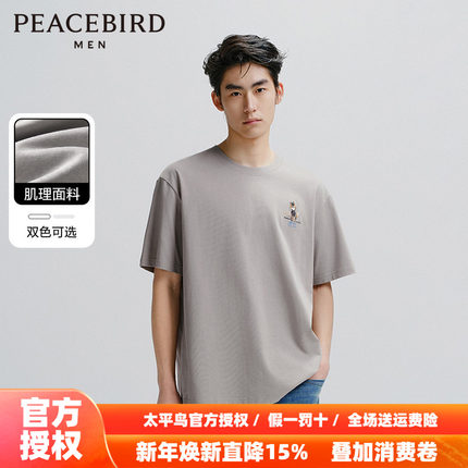 太平鸟男装 小狐狸刺绣t恤男2025年秋季新款纯棉白色男生短袖体恤