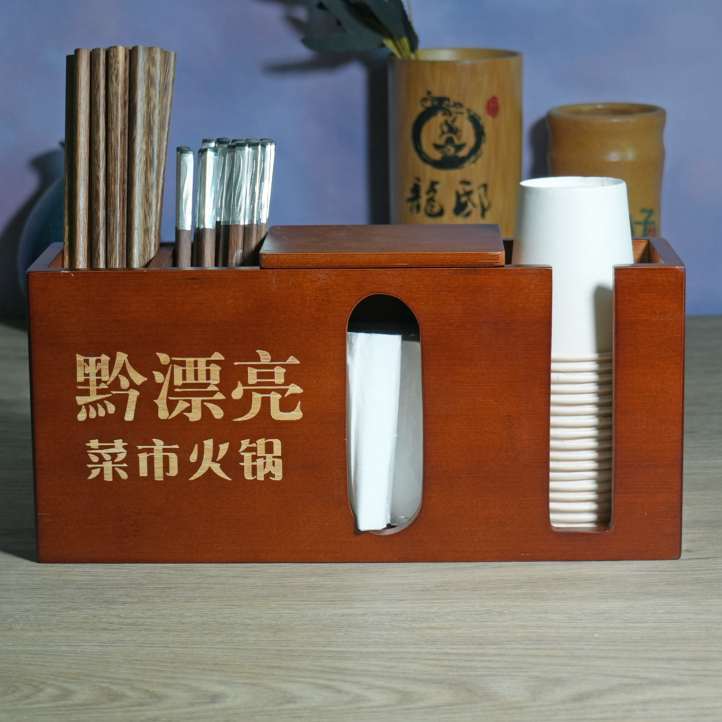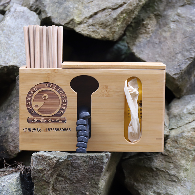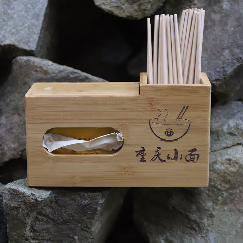 商用餐厅竹制抽纸盒组合筷子筒