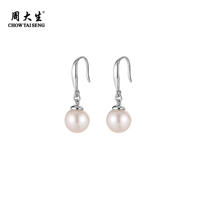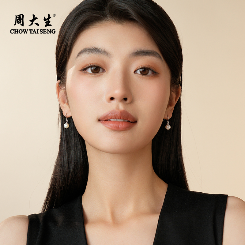 周大生素银流光珍珠耳环强光淡水珍珠珍珠耳环款经典百搭7-7.5mm