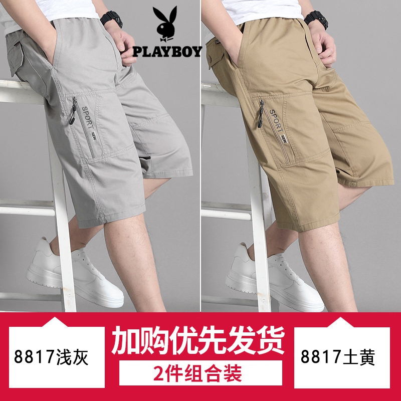 花花公子男装夏季纯棉七分裤男士短裤宽松7分马裤运动休闲裤子