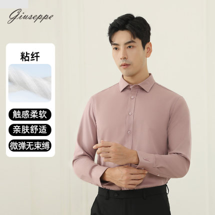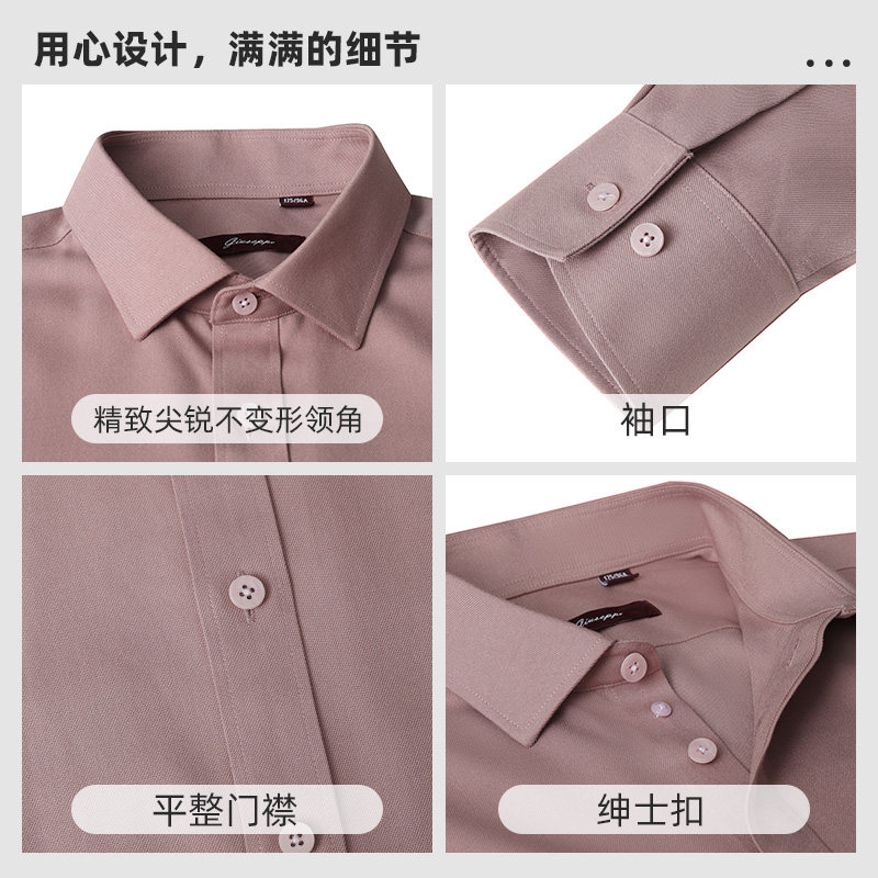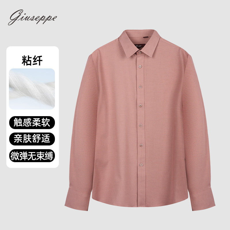 乔治白男士春秋季商务休闲尖领修身粉色长袖衬衫简约纯色上衣