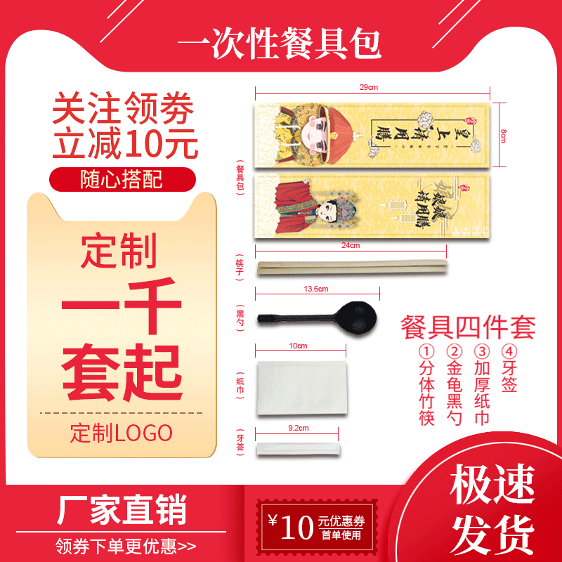 定制一次性餐具四合一独立包装一次性筷子四件套外卖筷三件套商用