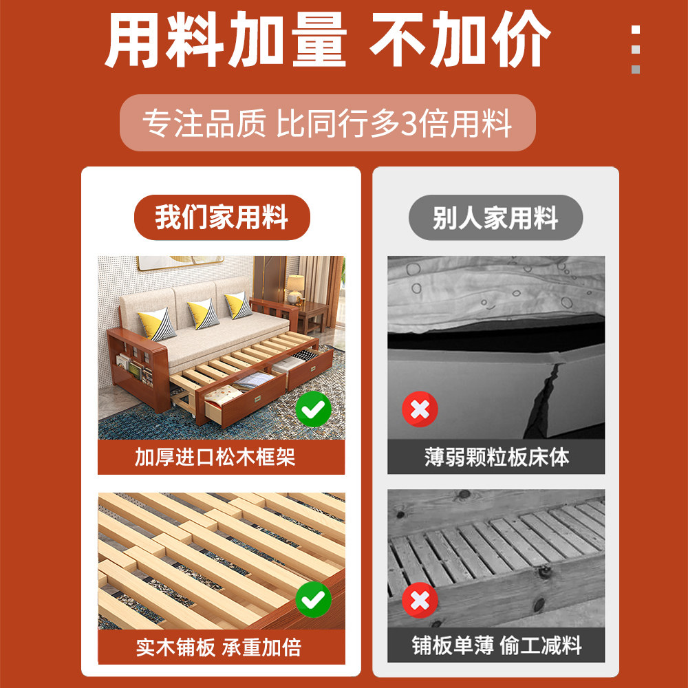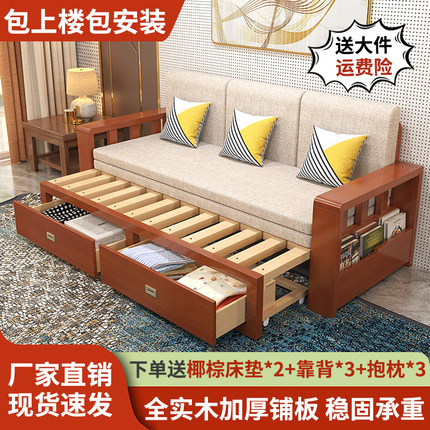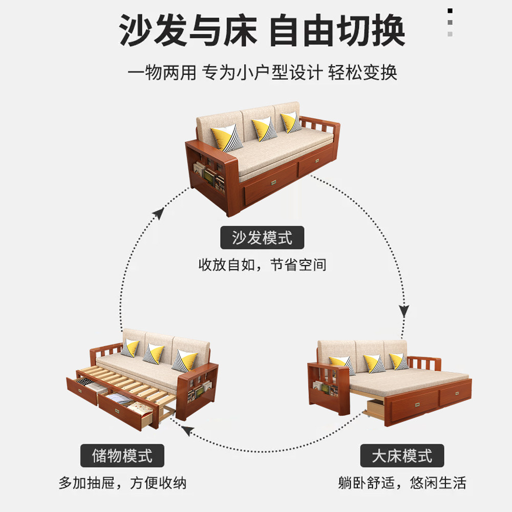实木沙发床可伸缩折叠客厅小户型两用多功能1.8米新款沙发储物床